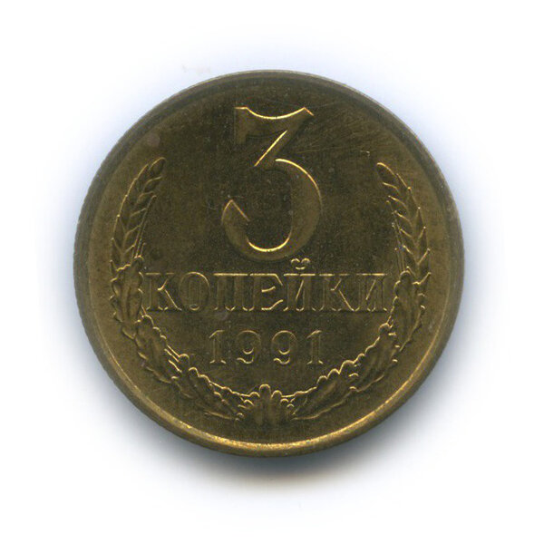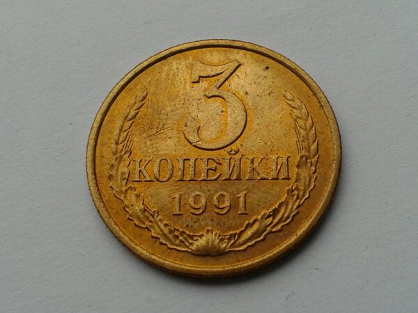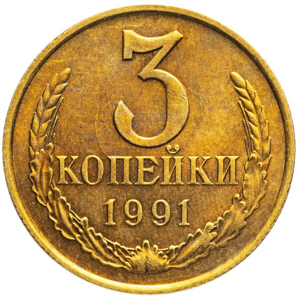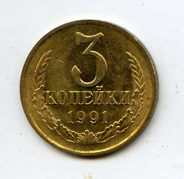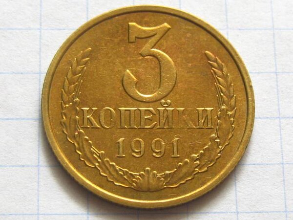 Главный объект охоты для многих — пробная монета номиналом 3 копейки 1991 года. Её отличительная черта — нестандартный дизайн, при котором обозначение номинала, название монеты и год выпуска указаны как на аверсе, так и на реверсе.