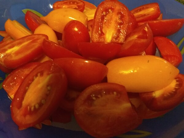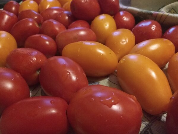 - Помидоры — 2 кг. Идеально подходят твёрдые сливки (красные или жёлтые). Можно смешать оба цвета для красоты.