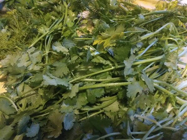 - Свежая зелень (укроп, петрушка, кинза) — большое количество.