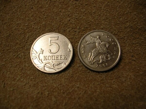 Особый интерес представляет пятикопеечная монета, отчеканенная в 2008 году на Московском монетном дворе. Её отличительная особенность, определяющая высокую стоимость, — особое расположение знака монетного двора.