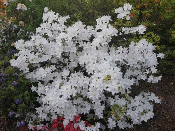 Коллекция насчитывает более 60 сортов рододендронов, включая редкие вечнозелёные виды. Их внешний вид настолько различен, что сложно поверить, что это представители одного рода растений.