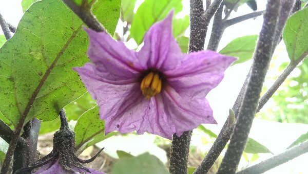 Моё восхищение цветами баклажана оказалось не случайным — это растение действительно относится к отделу цветковых (покрытосеменных). Его научное название — Solánum melongéna, или Паслён тёмноплодный, вид многолетних травянистых растений рода Паслён.
