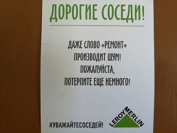 Здесь вы можете прочитать статью, которая объясняет, почему тема отношений с соседями для меня так важна. Если им уже мешают обычные шаги по квартире, то что будет, когда я начну ремонт? Боюсь, что даже самые остроумные таблички не спасут ситуацию.