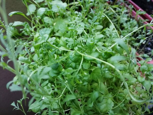 Кресс-салат радует глаз своей пышной кудрявой зеленью.