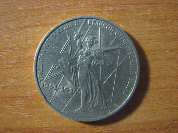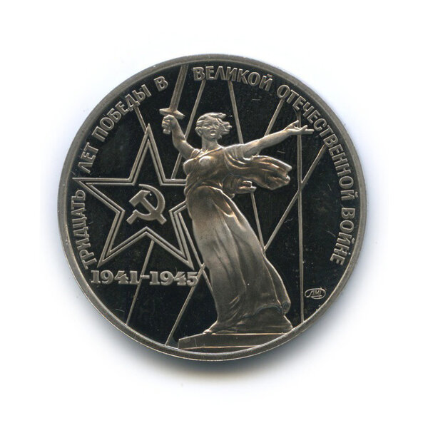 Одной из таких монет является юбилейный рубль, выпущенный к двадцатилетию Победы в Великой Отечественной войне. На её реверсе изображена скульптура «Воин-освободитель» (часто описываемая как Аврора с мечом), символизирующая торжество мира и памяти о подвиге.