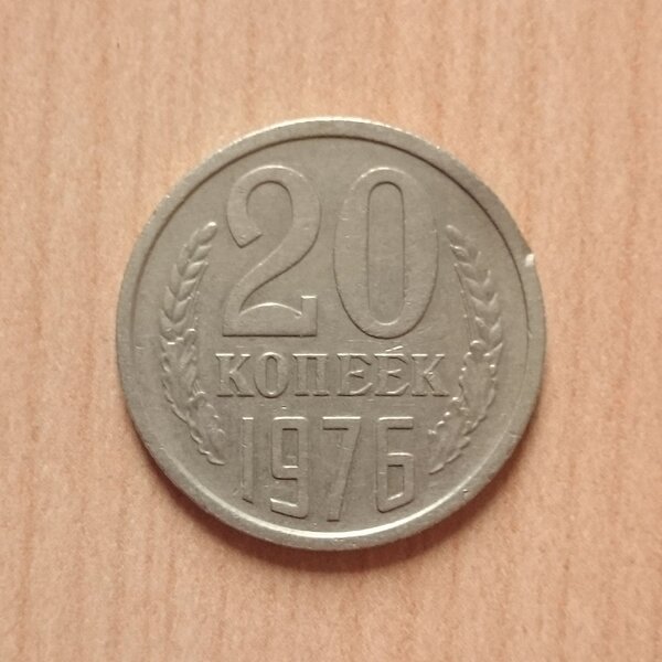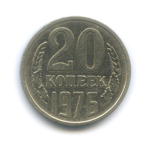 В фокусе нашего внимания — монета номиналом 20 копеек, отчеканенная в 1976 году. Несмотря на то что с момента ее выпуска прошло не так много времени, и многие люди наверняка держали ее в руках как обычную сдачу, сегодня она представляет коллекционную ценность.