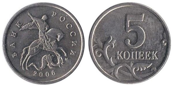 Яркий пример такой редкой и ценной монеты — пять копеек, отчеканенные на Московском монетном дворе в 2006 году и выпущенные в обращение. Её отличительная особенность, помимо года и места чеканки, — материал: она не должна магнититься, так как сделана из биметаллической заготовки (сталь, плакированная мельхиором). Именно такая комбинация признаков делает её редкой.