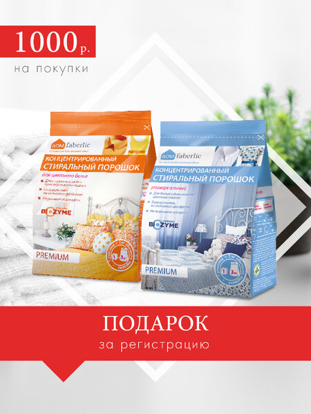 Для читателей моего канала Faberlic подготовила отличное предложение! Если вы станете новым клиентом компании в период с 8 по 28 апреля 2019 года и выполните простые условия, то получите ценные подарки: 1000 рублей на счёт для оплаты заказа и уникальный концентрат стирального порошка на выбор.
