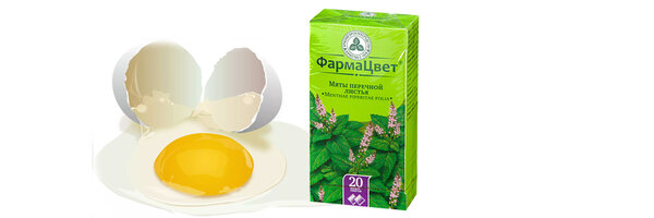 Смешайте охлажденный мятный настой со слегка взбитым яичным белком до однородной консистенции.