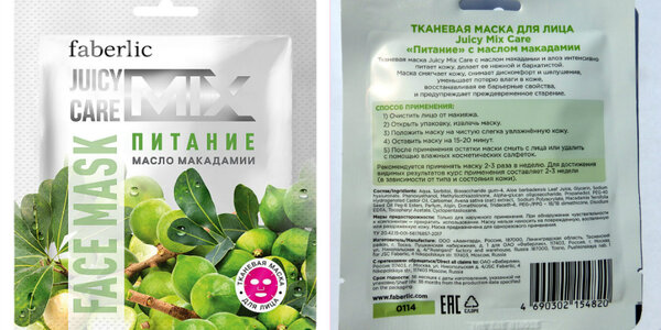 Тканевая маска для лица Juicy Mix care «Питание» с маслом макадамии