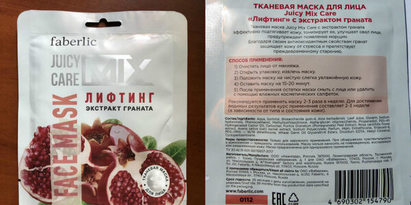 Тканевая маска для лица Juicy Mix care «Лифтинг» с экстрактом граната