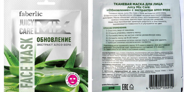 Тканевая маска для лица Juicy Mix care «Обновление» с экстрактом алоэ вера