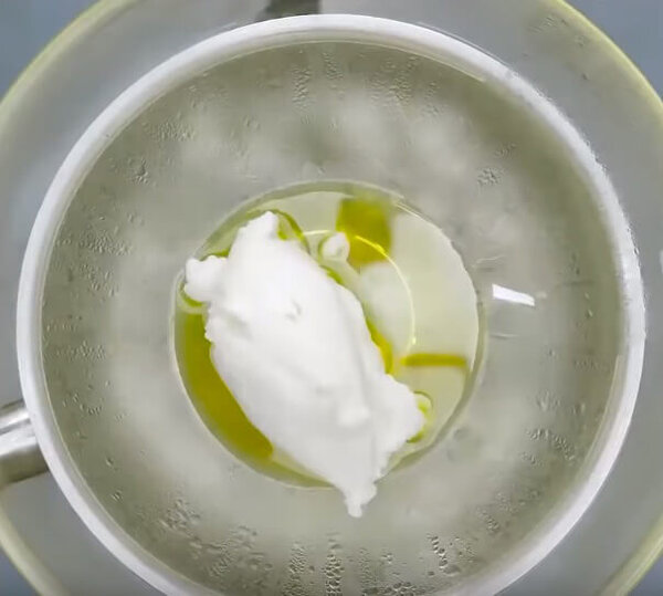 Шаг 2: Добавьте 3 столовые ложки выбранного вами базового масла (кокосового или оливкового). Поставьте миску на водяную баню и нагревайте смесь, постоянно помешивая, до тех пор, пока воск полностью не растворится, а ингредиенты не превратятся в однородную массу.