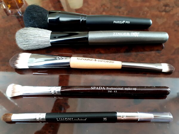 Я предлагаю обратить внимание на 5 моделей, две из которых двусторонние. Таким образом, вы получаете по сути 7 инструментов, которых достаточно для создания полноценного, сложного макияжа. В подборке представлены кисти разных марок: Parisa, Limoni, Zinger, Qvs и Spada.