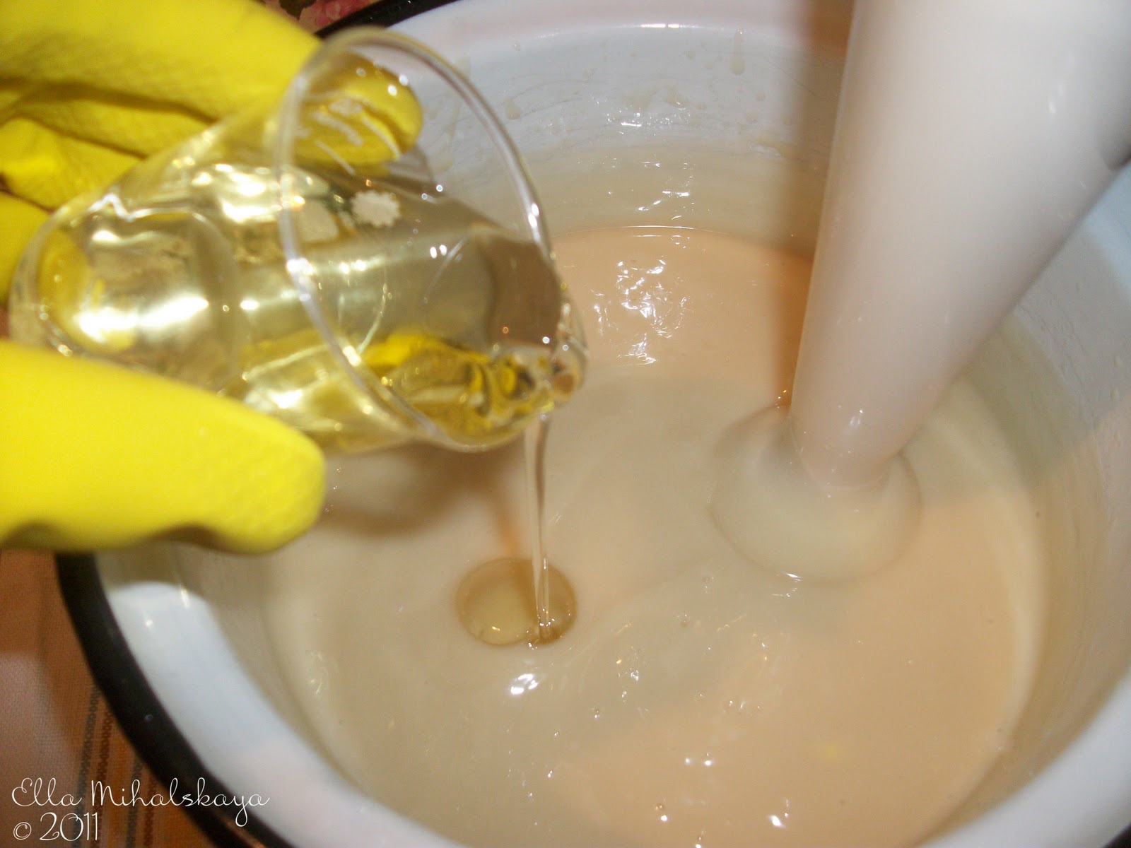 Шаг 4: Соединение компонентов. Когда мыльная масса станет похожа по консистенции на густую сметану, снимите её с огня. Тонкой струйкой влейте приготовленную смесь молока с петрушкой, активно помешивая, чтобы добиться идеально однородного состава без комочков.