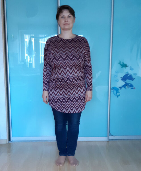 «У меня очень нестандартные пропорции: очень пышная грудь (размер чашки К и больше), при этом относительно узкая спина, широкие бедра. Есть лишний вес, и хотя талия уже не так выражена, как раньше, основные сложности в подборе одежды связаны именно с грудью. Часто выбор сводится к бесформенным балахонам или, наоборот, к обтягивающим вещам, которые подчеркивают и грудь, и лишние объемы», — делится Екатерина.