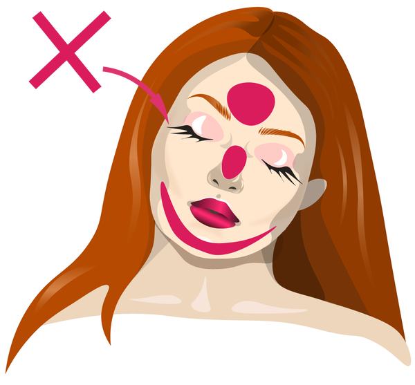 Блеск в этой области не делает губы полнее, а может создать нежелательную ассоциацию, например, с насморком. Поэтому наносить хайлайтер на «галочку» верхней губы нужно аккуратно, не выходя за ее контур и не приближаясь слишком близко к ноздрям.