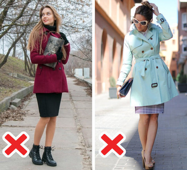 Вопрос о том, что должно быть длиннее — пальто или юбка, — решен дизайнерами. Оба варианта допустимы и могут быть стильными. Единственная комбинация, от которой лучше отказаться, — это короткое приталенное пальто с поясом в сочетании с юбкой-карандаш. Такой ансамбль может нарушить пропорции и сделать фигуру непропорциональной.