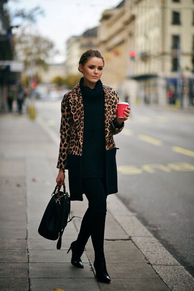 Классический коричневый леопард идеально сочетается с одеждой коричневой гаммы или красных оттенков. Однако важно помнить: обладательницам пышных форм этот яркий принт может добавить излишней броскости и выглядеть вульгарно, поэтому им стоит отнестись к нему с осторожностью.