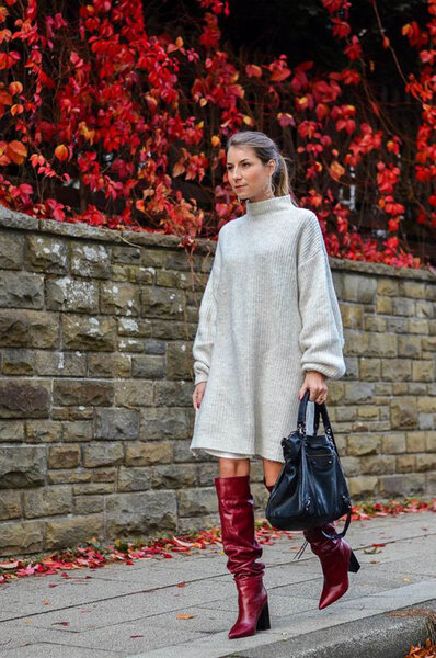Эта эффектная обувь отлично сочетается с обтягивающими джинсами или легинсами, объемными вязаными платьями, джинсовыми юбками и шерстяными шортами. Критически важный параметр — длина верха. Расстояние между подолом юбки (или краем шорт) и голенищем сапога не должно превышать 10-15 сантиметров, иначе образ потеряет целостность. Также следите за тем, чтобы цвет колготок был максимально приближен к оттенку обуви.