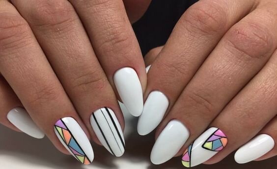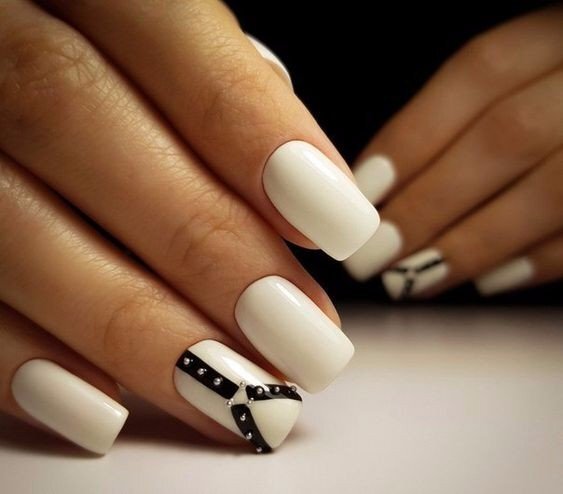 Чтобы сделать белый маникюр ещё интереснее, можно добавить декоративные элементы. Тонкие полоски, стильные аппликации или мозаичные вставки превратят классику в уникальный дизайн.