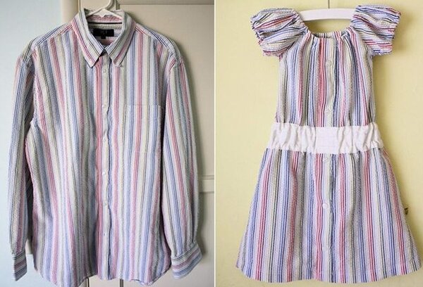 - Полная трансформация: Из взрослой футболки легко сшить платье или тунику для ребенка, стильный фартук или сумку-шопер.