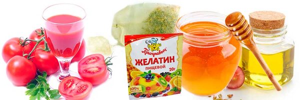 Пока первая маска находится на коже, приготовьте основу для утреннего этапа. В чистую баночку с плотной крышкой поместите оставшийся томатный сок (возьмите его за 4 условные части), добавьте желатин (1 часть), мёд (2 части) и выбранное растительное масло (1-2 части). Тщательно и энергично взболтайте смесь до однородности.