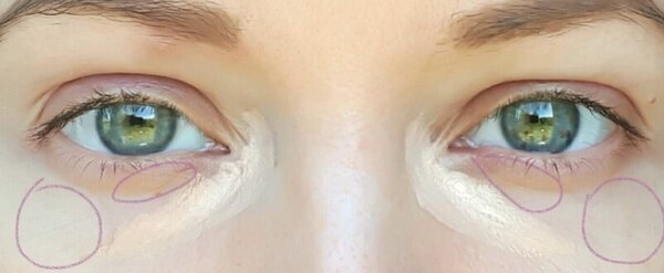 Существует популярный среди визажистов метод, предполагающий осветление области под глазами с помощью консилера, нанесенного в форме треугольника. Вот как это выглядит на практике: