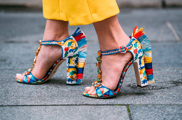 Мюли без задника — абсолютный хит сезона. Чем смелее и ярче дизайн, тем лучше! Смело выбирайте модели с бахромой, кисточками, нестандартными массивными каблуками или крупными бантами. Также в тренде принты с растительными и животными мотивами, которые помогут создать запоминающийся образ.
