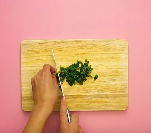 Шаг 1. Тщательно промойте и мелко нарежьте свежие листья базилика.