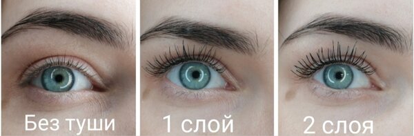 Обещанного «суперобъёма» тушь не даёт, но в этом и нет острой необходимости, особенно в летний период, когда я предпочитаю лёгкий макияж. Часто бывает достаточно одного слоя. Для более выразительного взгляда можно нанести второй слой — он ложится хорошо, не склеивая ресницы.