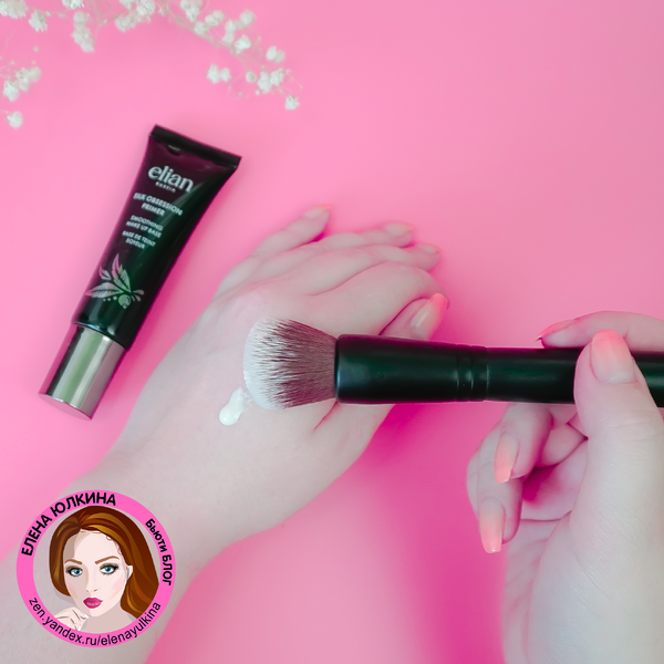 Перед нанесением я рекомендую выдавить небольшое количество базы на тыльную сторону ладони или специальную палитру. Этот простой прием позволяет точно контролировать объем продукта и равномерно распределить его по ворсу кисти.