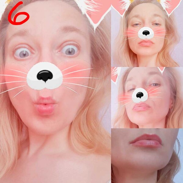 6. Тестирование результата. На фото виден эффект сразу после нанесения и спустя полчаса. Жгучее ощущение со временем проходит, а визуальный объем и улучшенный цвет губ сохраняются.