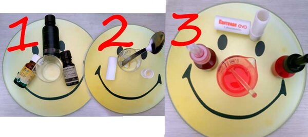 - Краситель (опционально) — для придания оттенка. Подойдет кусочек старой помады, измельченный карандаш для губ или специальный жидкий пигмент.