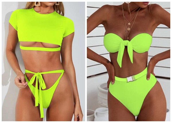 Неоновый купальник — это гарантия того, что вас заметят даже на самом многолюдном пляже. Он идеально подчеркивает бронзовый загар и добавляет образу энергии и динамики.