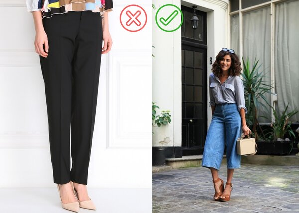 С возрастом качество материалов выходит на первый план. Прямые брюки из дешевого, блестящего полиэстера не только выглядят неэстетично, но и моментально создают впечатление, что женщина перестала следить за собой. Чтобы подчеркнуть элегантность и современность, выбирайте брюки из благородных тканей (шерсть, качественный хлопок) в актуальных фасонах: укороченные (длиной ⅞), свободные «бананы», стильные кюлоты или классические узкие модели.