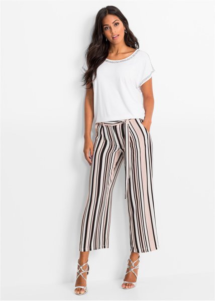 Полоска — это тренд, проверенный временем. С момента, когда Коко Шанель ввела ее в моду, прошло больше века, но она не теряет своей актуальности. На последних показах дизайнеры вновь подтвердили это, представив стильные модели брюк прямого кроя из смесовых тканей (хлопок, лен). Такие брюки не только комфортны, но и визуально стройнят фигуру. Они отлично вписываются как в casual-образы, так и в более формальные луки.