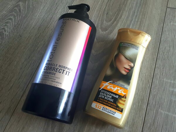 Речь идет о популярном оттеночном бальзаме марки Fara. Многие блондинки знакомы с этим продуктом и знают его главный недостаток: он обладает сильным подсушивающим эффектом. Однако мне очень нравится результат, который дает оттенок 532 «Жемчужная блондинка» — он делает цвет волос холодным, ярким и благородным.
