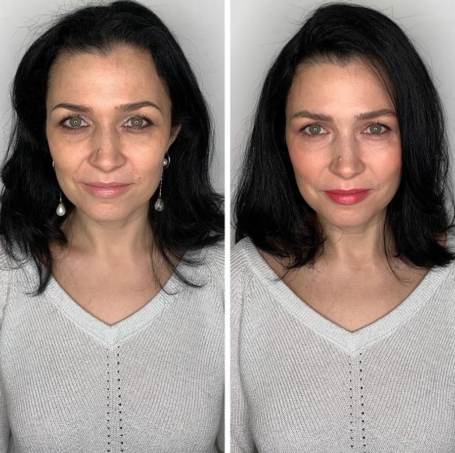 Идеально проработанная кожа — основа безупречного макияжа. Признак низкой квалификации — неровный тон, заметные цветовые пятна (покраснения, пигментация), которые не были скорректированы. Профессионал использует цветокоррекцию и легкие, слоистые текстуры, чтобы нейтрализовать недостатки, а не «замазывать» их толстым, маскирующим слоем тонального средства. Плотное нанесение теней или помады — это стилистический выбор, а вот «маска» из тонального крема, напоминающая грим, — явный промах. Кроме того, ответственный мастер использует только оригинальную, качественную косметику, заботясь о здоровье кожи клиента.