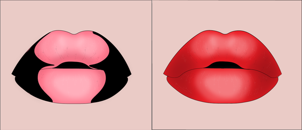 Аккуратно затемните уголки губ карандашом, после чего нанесите красную помаду. Кисточкой тщательно растушуйте границы, добиваясь плавного перехода от темных краев к яркой середине. Важно избегать резких контуров, сохраняя при этом насыщенный цвет в центре.
