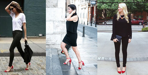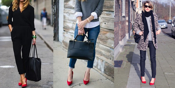 Позже уличная мода пришла к более сдержанному варианту: красные туфли стали дополнять лишь одним аксессуаром того же цвета, чтобы избежать эффекта чрезмерной слаженности (matchy-matchy).