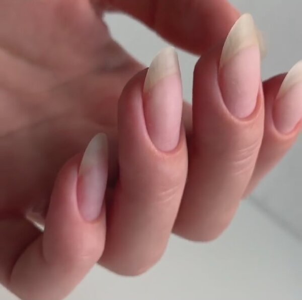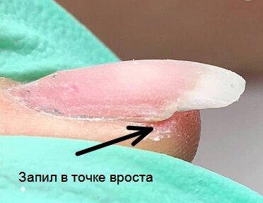 1) Нет запилам в зоне ногтевого роста (матрикса)! Это одна из самых грубых и опасных ошибок. Часто мастера, стремясь сузить свободный край, чрезмерно спиливают ногтевую пластину в так называемой «стресс-зоне» — у самого основания. Это не только портит эстетику, но и ослабляет структуру ногтя, что в будущем почти гарантированно приводит к трещинам по бокам и болезненным сколам. Ногтевое ложе теряет опору и начинает «провисать». Исправить подобную ошибку можно только с помощью наращивания на бумажные формы с использованием жесткой базы.