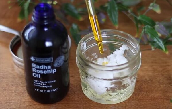 2. Влейте 1 чайную ложку масла шиповника или облепихового масла. Это придаст смеси дополнительные регенерирующие свойства.