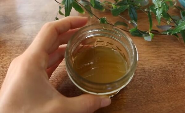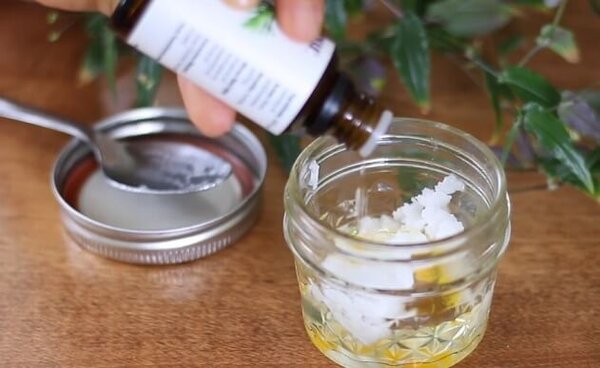 6. Аккуратно разогрейте состав на водяной бане или в микроволновой печи до однородной жидкой консистенции, чтобы все компоненты хорошо соединились. После этого дайте маслу остыть.