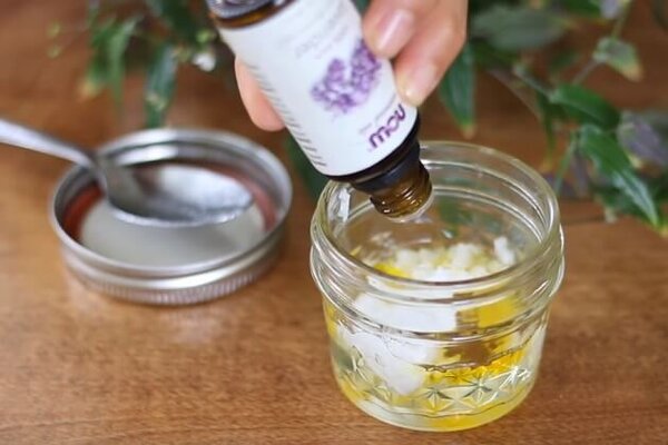 4. Введите 5–10 капель эфирного масла лаванды. Оно успокоит кожу головы и придаст приятный аромат.