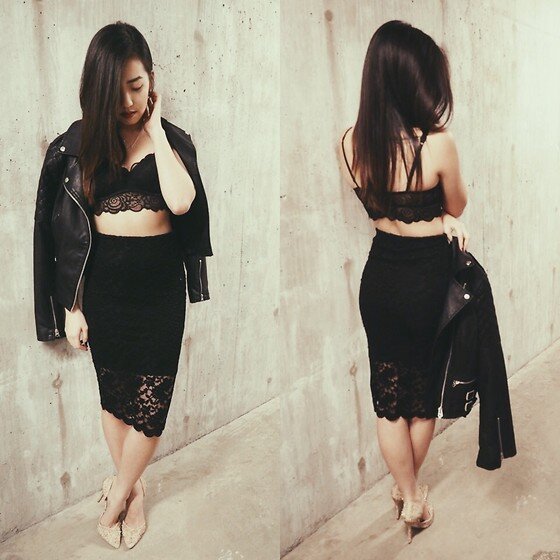 Беспроигрышный вариант — сочетание черного кружевного бралетта с юбкой-миди. Дополните образ распущенными волосами, клатчем и массивным украшением в тон, чтобы подчеркнуть шарм. Для более смелого и романтичного лука выберите длинную кружевную юбку, а сверху накиньте джинсовую или кожаную куртку — это создаст интересный контраст. Если же вы предпочитаете короткие юбки, наденьте поверх бра свободный кардиган или объемный свитер.
