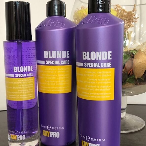 Исключение и личная рекомендация: линейка KayPro Blonde Special Care. Я рекомендую ее не понаслышке — продукцию этой марки постоянно перезаказывали и мастера, и клиенты для домашнего ухода. Несмотря на наличие сульфатов в составе шампуня (что обычно является минусом), на практике он отлично справляется: не сушит, не окрашивает кожу, а волосы после него выглядят ухоженными, а цвет не тускнеет. Также в этой линейке стоит обратить внимание на сыворотку с сапфировой пудрой — она защищает пигмент от термического воздействия и не утяжеляет волосы, что особенно актуально летом.