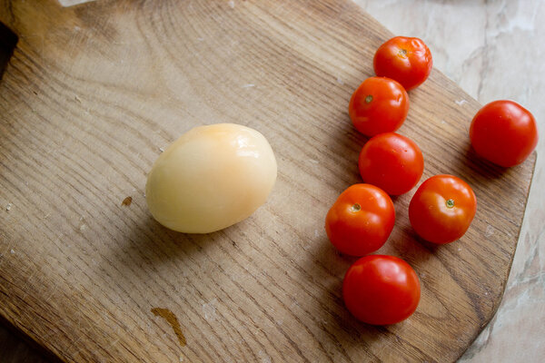 Очищенное замороженное яйцо кладем на разделочную доску и нарезаем тонкими ломтиками. Важно работать быстро, так как яйцо начинает таять.