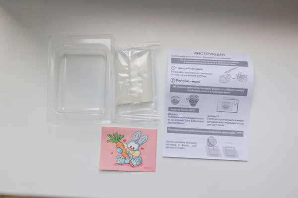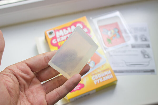 Если отбросить творческую составляющую, то по сути вы приобретаете небольшой кусок мыла за 150–200 рублей. Главная идея набора — поместить картинку внутрь мыльного бруска. В инструкции указано, что рисунок напечатан на водорастворимой бумаге, хотя на практике это свойство было не слишком заметно.