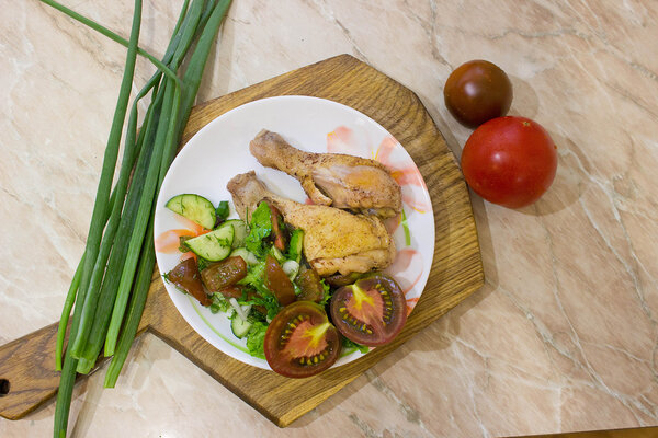 Пока наш сын Тёма был поглощён строительством фантастической конструкции из подручных материалов, мы с супругой взяли штурмом кухню. Распределили задачи по традиционному принципу: мужчина отвечает за мясо, а женщина управляет всем остальным процессом. На этот раз мы решили обойтись без десертов и выпечки, выбрав что-то более основательное — куриные голени. И, как оказалось позже, не прогадали!